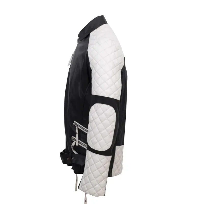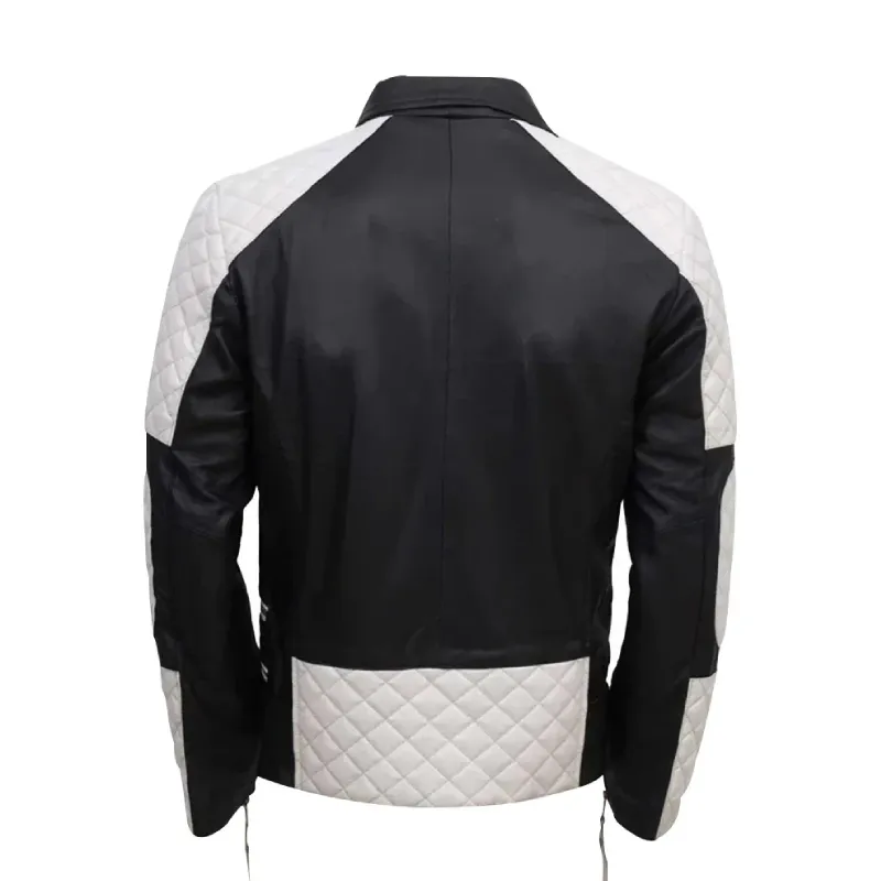 White and Black Biker Style Genuine Leather Jacket for Men